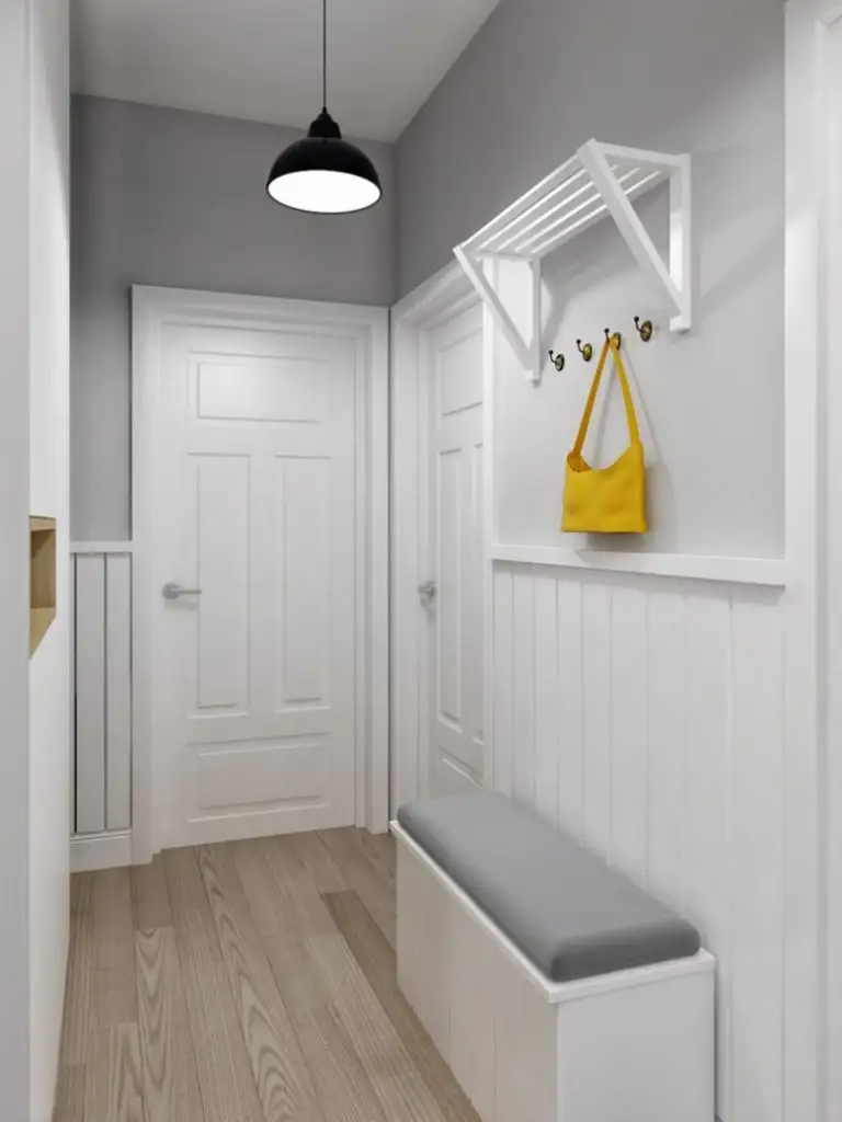 Alte optiuni pe care le poti folosi sunt sistemele suspendate precum cel de mai jos. Un astfel de sistem este potrivit pentru un hol mic dintr-un apartament studio sau garsoniera.