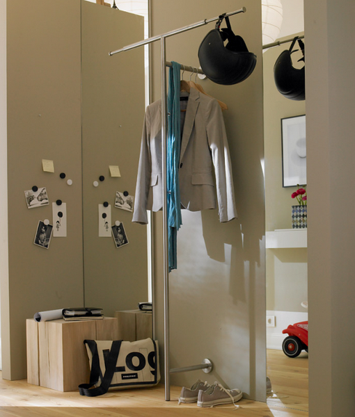 Alte optiuni pe care le poti folosi sunt sistemele suspendate precum cel de mai jos. Un astfel de sistem este potrivit pentru un hol mic dintr-un apartament studio sau garsoniera.