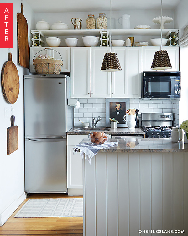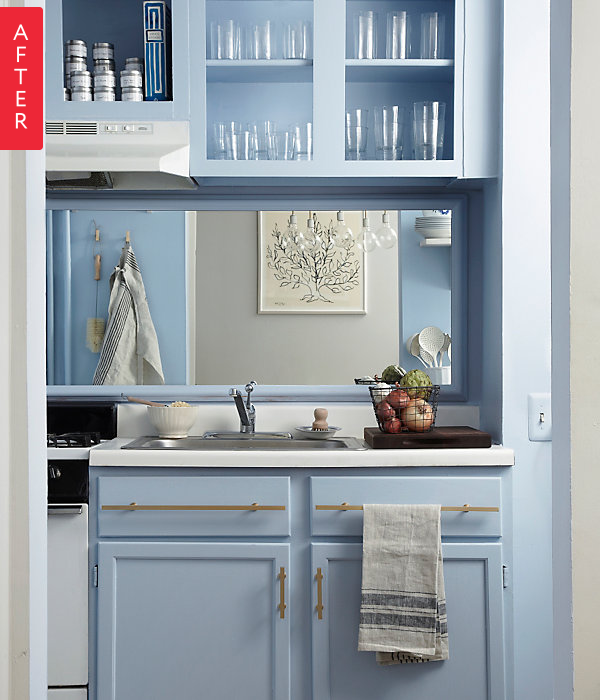 2. Modifica functionalitatea corpurilor de mobilier.Adauga sau schimba aspectul manerelor si incuietorilor sau chiar renunta la usile unor dulapuri. Intr-o bucatarie micapoti adauga apoi si o oglinda care va aduce senzatia suplimentara de spatiu.