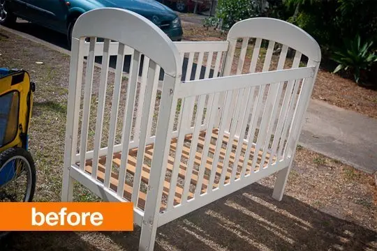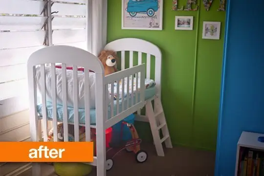 Adriel a pastrat gratiile si rama originala a patutului de copii, mentinand practic intact patul initial, dar a ridicat baza acestuia pentru a-l transforma intr-o versiune mica si compacta a unui pat supraetajat. Ramele si gratiile de lemn ale patului ofera siguranta bebelusului care doarme, iar cu spatiul de depozitare nou aparut sub patut, vei avea o viata mult mai usoara in ceea ce priveste ingrijirea micutului tau.