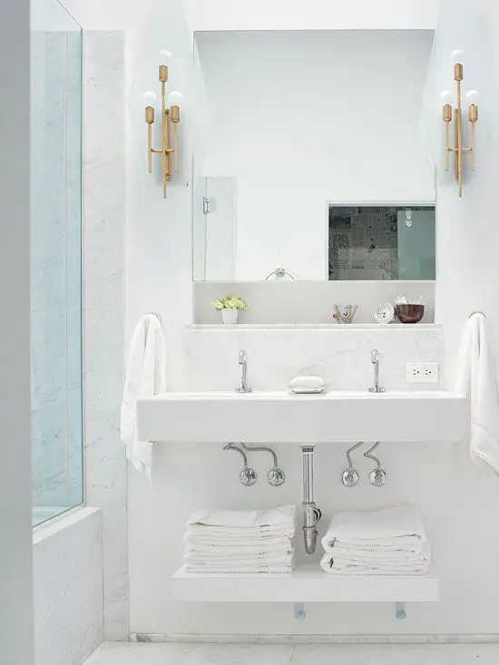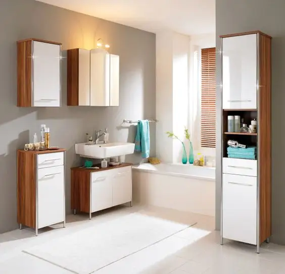 In plus, daca iti organizezi spatiul asa cum iti doresti, se va potrivi ca o manusa nevoilor tale de depozitare. Gandeste-te cat de usor va fi sa gasesti prosoapele si gelurile de dus intr-un dulap cu adancimea de doar 45 de cm. Ca sa profiti in intregime de capacitatea lui de stocare, alege un dulap care sa porneasca din podea si opteaza pentru culori deschise.