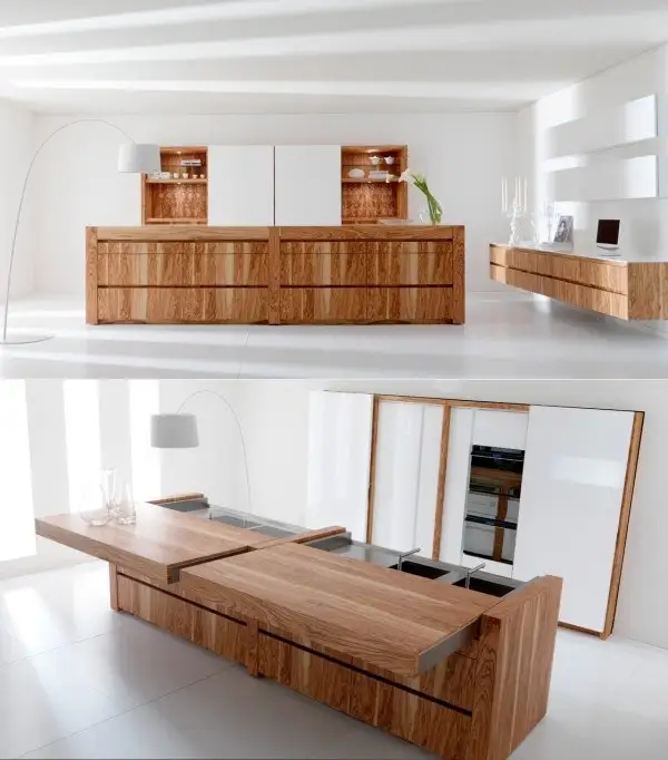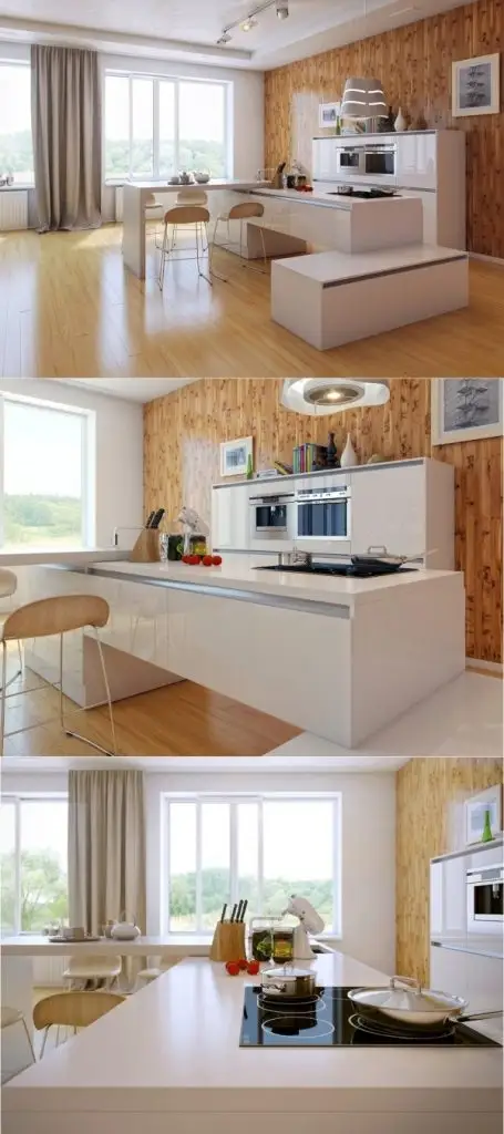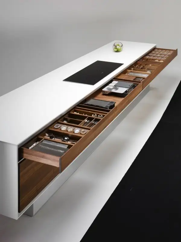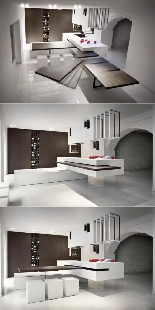 Acest blat de bucatarie are menirea de a salva din spatiul incaperii, avand 3 blaturi suprapuse care formeaza un ansamblu intreg de mobilier.