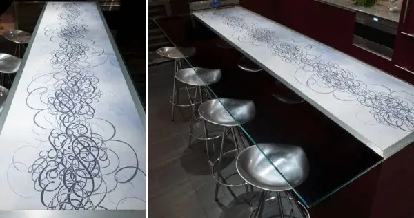 Un superb blat de bucatarie, cu textura de sticla, luminata