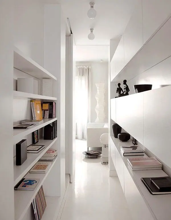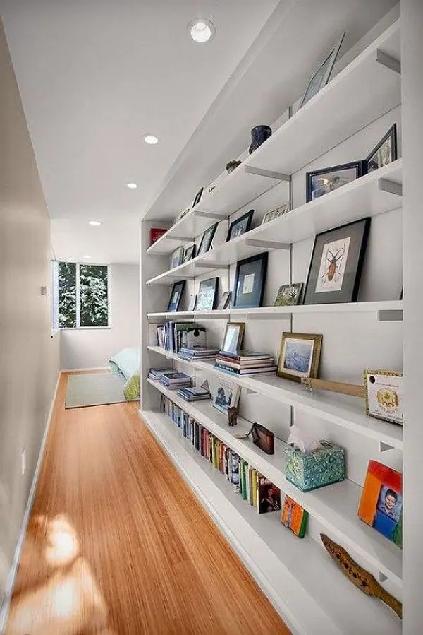 De ce sa nu profiti de dimensiunile deloc de neglijat ale holului tau? Iti poti monta aici o biblioteca cu rafturi deschise pentru a pastra senzatia de spatialitate. Rafturile pot servi drept suport pentru carti sau pot deveni un spatiu general de depozitare.
