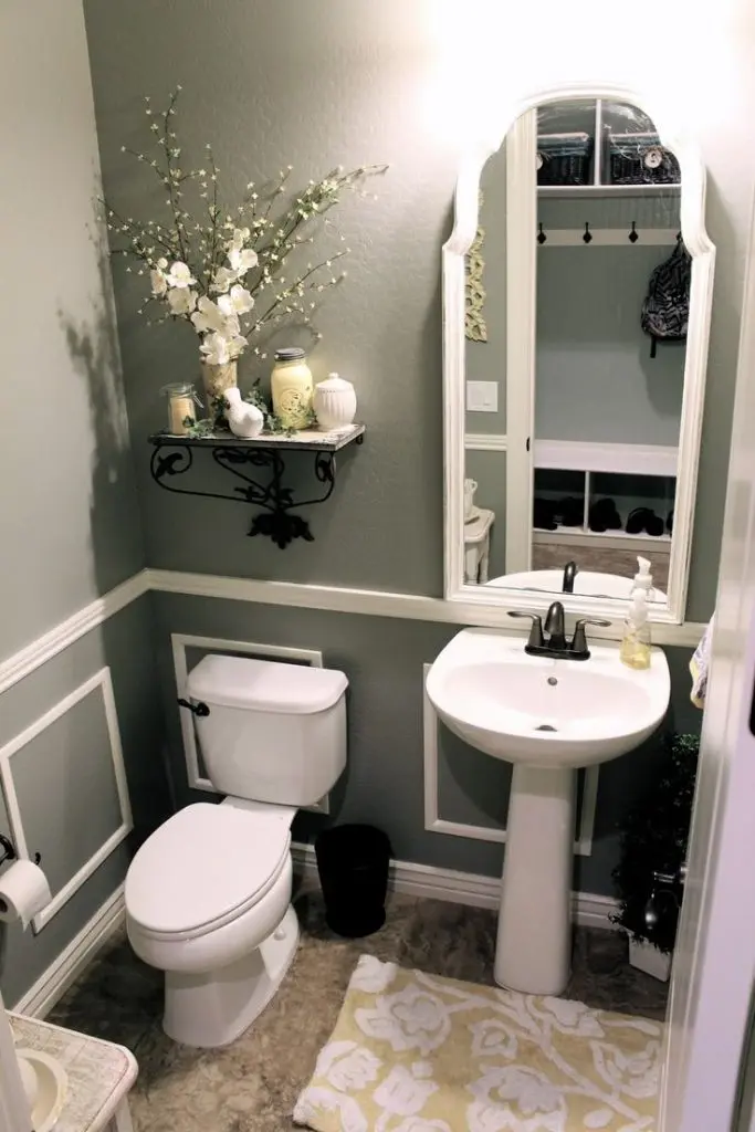 Ce poti face cu podeaua? Daca suprafata ei nu prea te incanta, alege un covoras de baie care sa imite un anumit motiv geometric sau orice alta varianta care sa mascheze imperfectiunile.