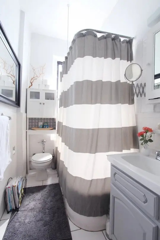 Majoritatea celor care locuiesc in chirie se confrunta cu problema iluminatului in baie. Lipsa ferestrei este un inconvenient, insa chiar si asa poti improviza pentru a obtine efectul dorit. Daca spatiul este prea intunecat, schimba becul cu unul cu o putere mai mare. Cand cumperi perdeaua de dus, alege o culoare deschisa.