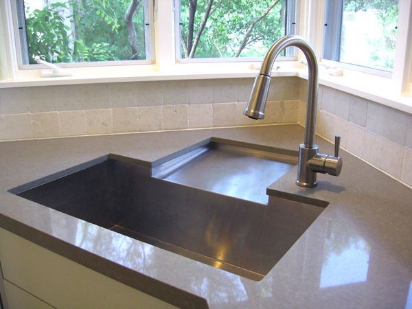 Deschide GaleriaDaca iti montezi in bucatarie o chiuveta de colt vei elibera o portiune considerabila de blat, chiar daca acum nu iti dai seama de asta. Nu uita totusi ca trebui sa respecti o lungime standard fata de aragaz. Daca alegi sa montezi o astfel de chiuveta opteaza si pentru un sistem de depozitare de colt, special pentru spatiul de dedesubt.