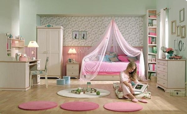 Daca domnisoara doreste ceva trainic puteti alege un pat cu baldachin, lenjerie cu inimioare sau motive florale, covorase sub forma de fluturi, veioze cu abajur romantic.