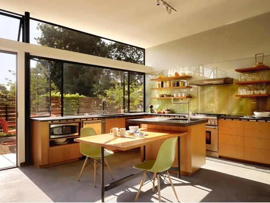 Un nou concept prinde contur in decorul bucatariilor: disparitia dulapurilor din partea de sus a bucatariei. Ele nu dispar complet ci sunt integrate in partea inferioara. Pentru un aspect retro, pastrati doar cateva etajere pentru cateva decoratiuni specifice bucatariei sau pentru cateva ierburi aromatice pe care sa le cresteti in cutii de metal.