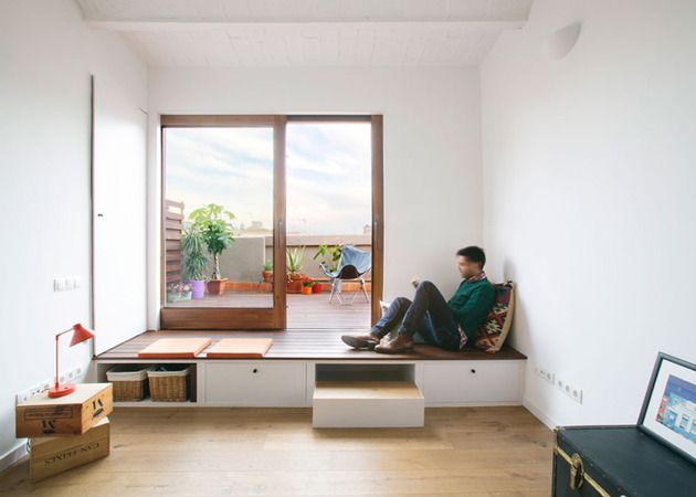 Simplu si practic spatiu de depozitare si de sedere perfect integrat in camera de zi