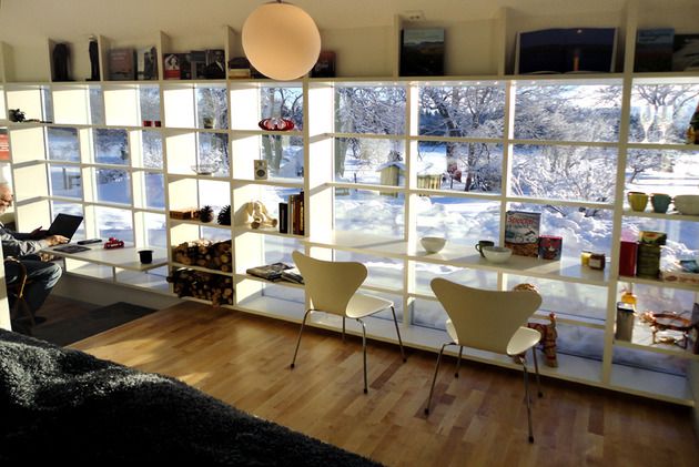 Rafturi incorporate in zona de scari si masa in colt vor ocupa mai putin spatiu