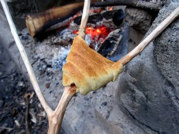 Foto 9: Infasoara bucati de aluat pe un bat pentru a avea o gustare delicioasa in dreptul unui foc de tabara.