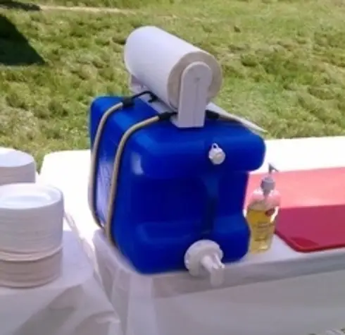 Foto 18: Foloseste un bidon de detergent pentru a improviza o chiuveta in natura.