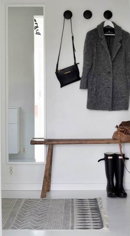 Sa trecem la depozitare. Cu cat vei alege un cuier mai mare, cu atat vei fi tentat sa il asaltezi cu haine si cu alte lucruri pe care le folosesti zi de zi. In locul unui astfel de corp, opteaza pentru un cuier minimalist format eventual doar din suportul pentru agatat hainele. Poti adauga o polita pentru chei, ochelari sau plicurile de corespondenta.