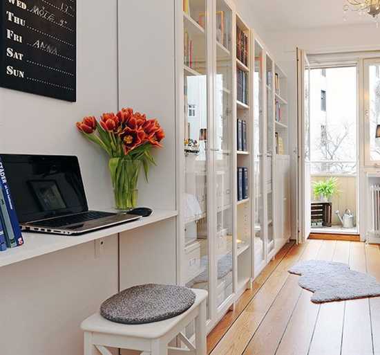 Biroul poate fi amenajat ca o continuare a mobilierului de living. Proiectat cu o latime intre 40 si 50 cm, acesta se poate folosi si ca suport pentru o vaza cu flori, cateva carti sau orice obiect decorativ atunci cand nu il utilizam pentru laptop sau monitor.