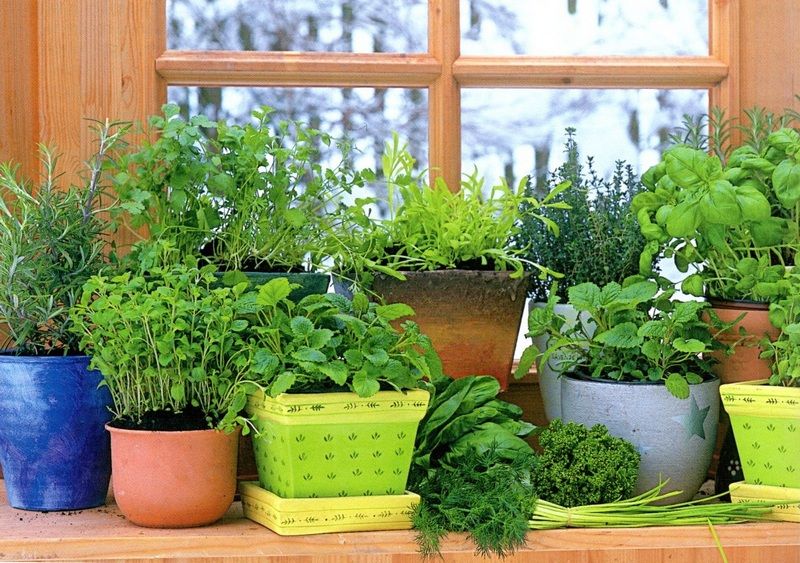 Pervazurile luminoase sunt locuri foarte potrivite pentru plantele aromatice anuale sau perene. Cei care nu vor sa renunte la condimentele lor preferate nici in sezonul rece, isi pot amenaja pe pervaz o mica gradina de iarna. Langa fereastra, putem tine plante si in jardiniere. Pentru astfel de culturi interioare se recomanda busuiocul, maghiranul, rozmarinul, cimbrisorul, tarhonul, patrunjelul, arpagicul. Muscatele parfumate si condurasii pot crea minunate pete de culoare.