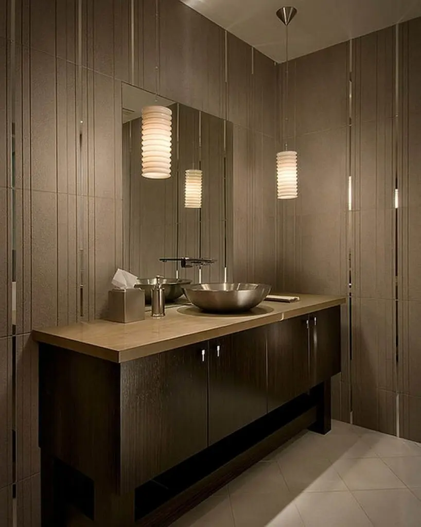 Corpurile de iluminat suspendante, in stil pandant, folosesc atat pentru iluminarea oglinzii, cat si pentru crearea ambientului.