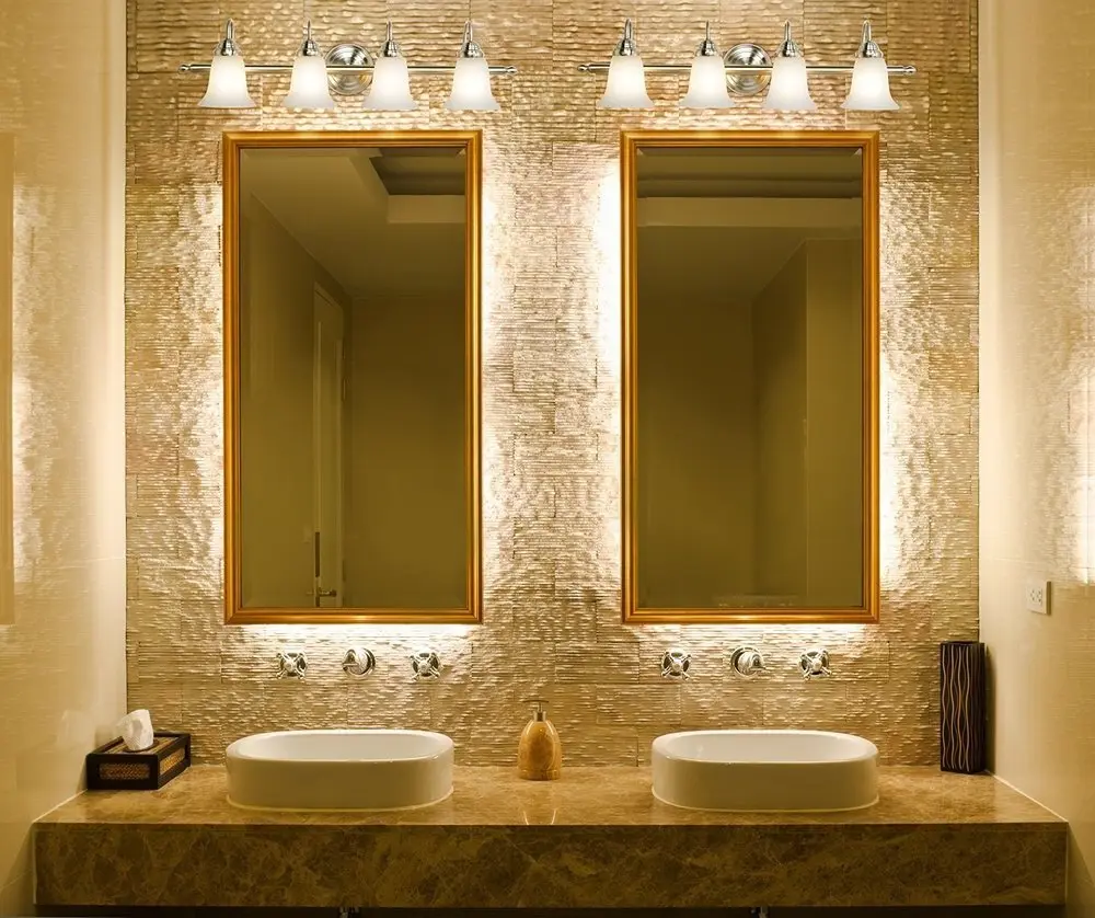 In zona oglinzii, cea mai buna alegere sunt sursele de lumina plasate pe ambele laturi ale acesteia, deoarece raspandesc lumina in mod egal spre fata.