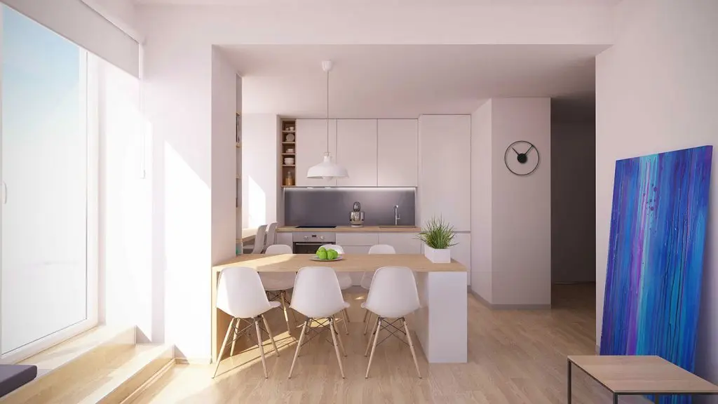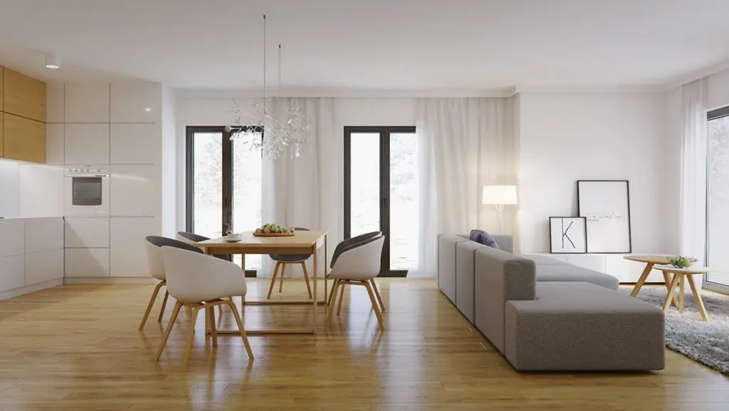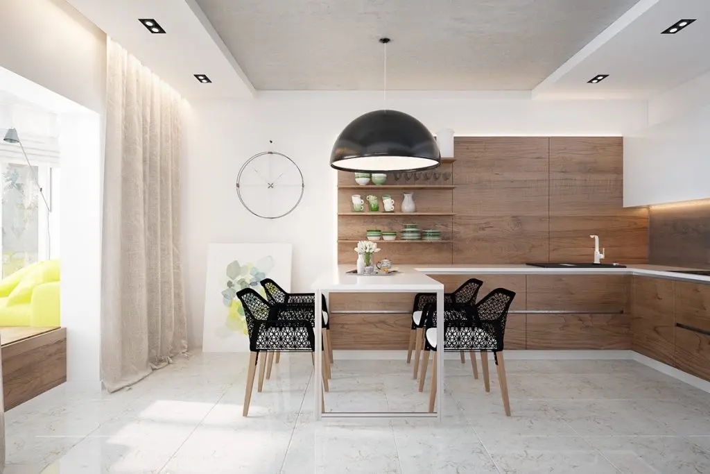 Corpuri de iluminat pentru diningul care face legatura intre living si bucatarie