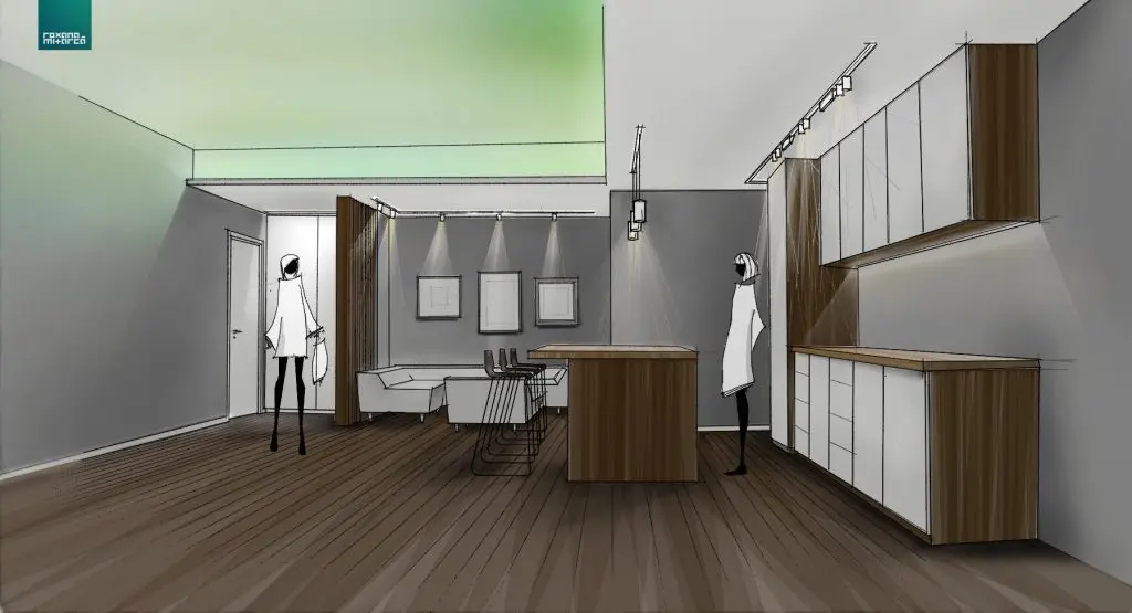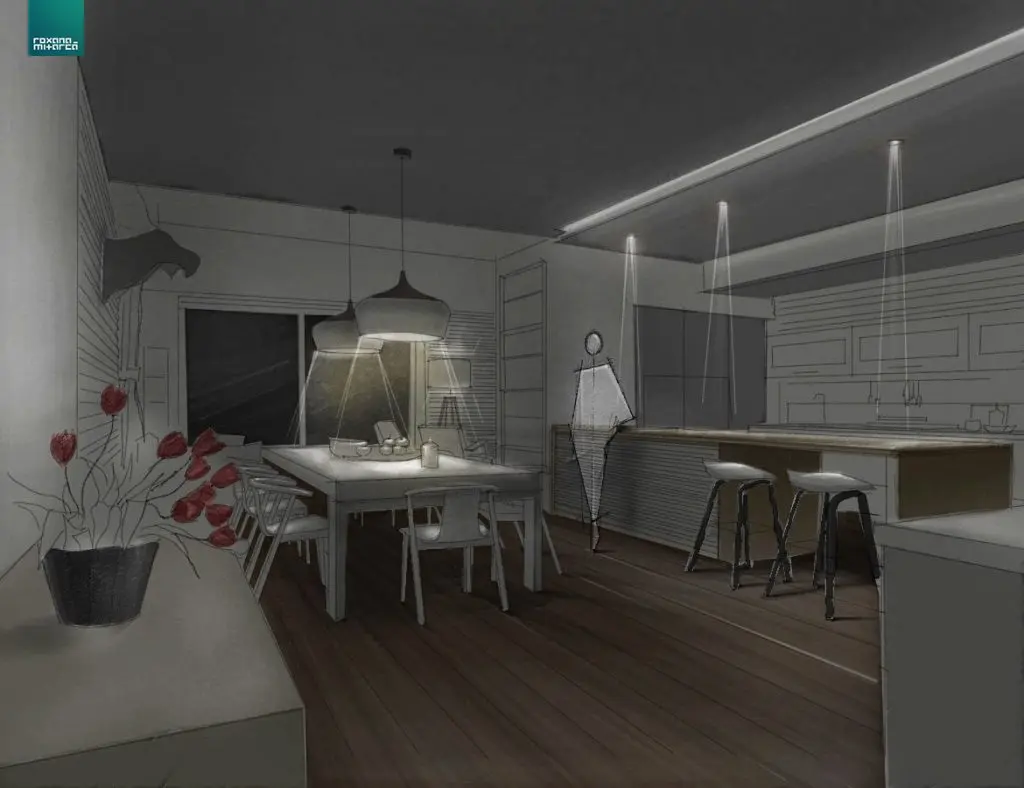Schite realizate de arhitectul de lumini pentru a ilustra tipurile de lumini intr-o amenajare pentru camera de zi