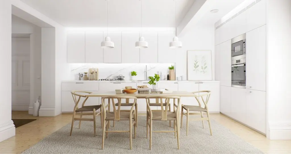 Corpuri de iluminat suspendate deasupra mesei de dining