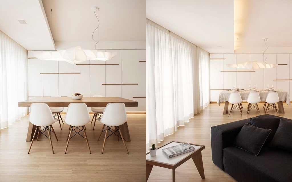 Corpuri de iluminat pentru diningul care face legatura intre living si bucatarie
