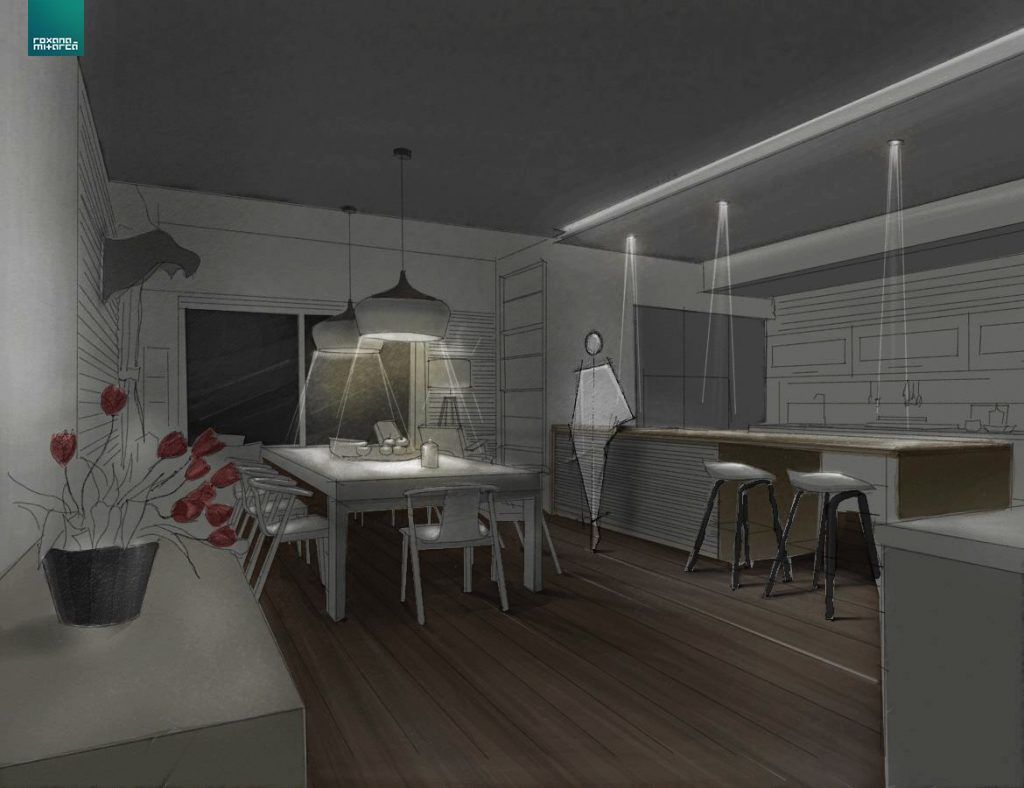 Schite realizate de arhitectul de lumini pentru a ilustra tipurile de lumini ce se pot utiliza intr-o amenajare pentru camera de zi
