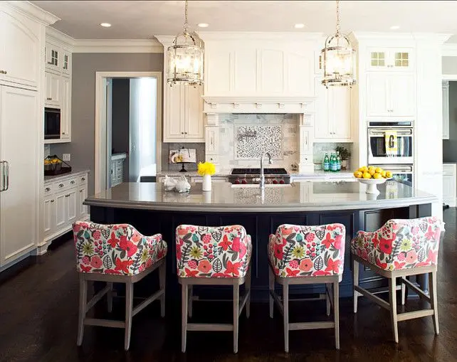 Aici accentul cade pe scaune, in mod sigur sunt primele obiecte pe care le privim. Printul floral multicolor este echilibrat cu accente de galben de pe masa.