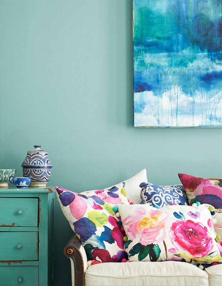Un alt secret este sa folosesti imprimeurile doar pe un loc, pe un obiect pe care vrei sa-l scoti in evidenta si va fi centrul de interes. Aici se va gasi culoarea principala care ”dirijeaza” armonios restul incaperii. Aceasta este reteta cea mai sigura, dar poti folosi printuri pe mai multe obiecte din camera, important e sa nu exagerezi si sa pastrezi aceleasi nuante pentru a nu crea discordanta.