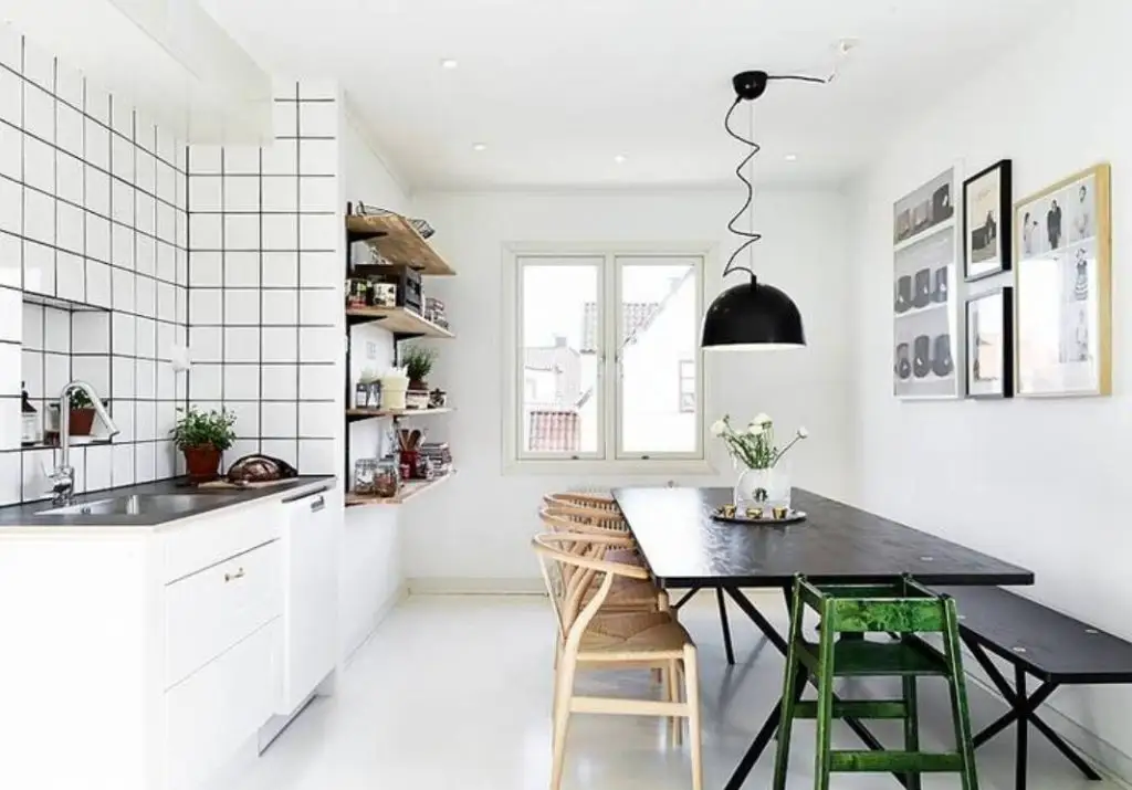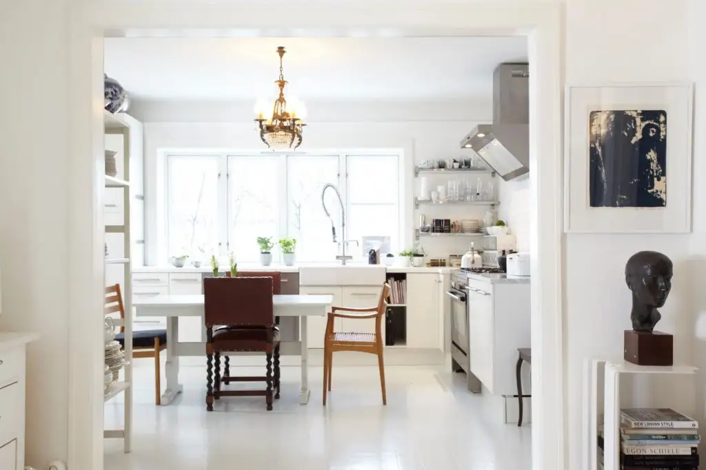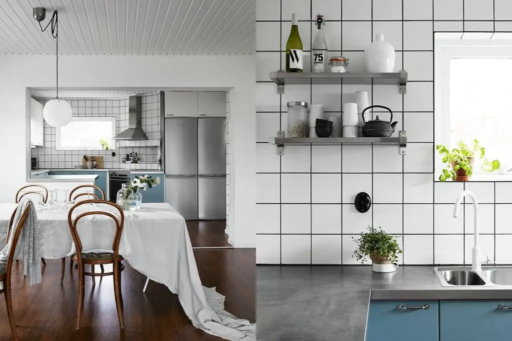 Exista nenumarate maniere de a reproduceaspectul scandinav in bucatarie. Cea mai simpla este pastrarea unei cromatici in intregime albe, care poate fi intrerupta de decoratiuni colorate (flori sau ghivece, prosoape de bucatarie, rame sau un backsplash colorat).