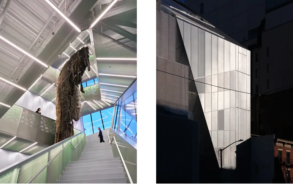 Trei decenii mai târziu, instituția a urmat aceeași filosofie atunci când a ales SANAA, firma de arhitectură japoneză (pe atunci nu foarte cunoscută), pentru a proiecta noul său sediu din Lower Manhattan. Deși experți în utilizarea sticlei, partenerii firmei, Kazuo Sejima și Ryue Nishizawa, au reacționat la contextul de atunci al zonei Bowery, la bugetul modest și la nevoia limitată de lumină naturală, creând o serie de cutii suprapuse din stuc (un strat de tencuială care oferă o suprafață continuă, fără îmbinări vizibile), acoperite cu o plasă metalică gri mat. Însă, la deschiderea din 2007, clădirea părea deja prea mică. „Am iubit-o, dar avea limitările ei”, spune Lisa Phillips, directoarea muzeului din 1999. Într-un deceniu, Phillips căuta deja să extindă muzeul pe parcela de 15 metri lățime de alături.