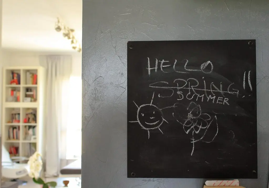 Tabla din bucatarie este un obiect ludic, pe care cei doi schimba mesaje sau unde isi invita musafirii sa fie creativi