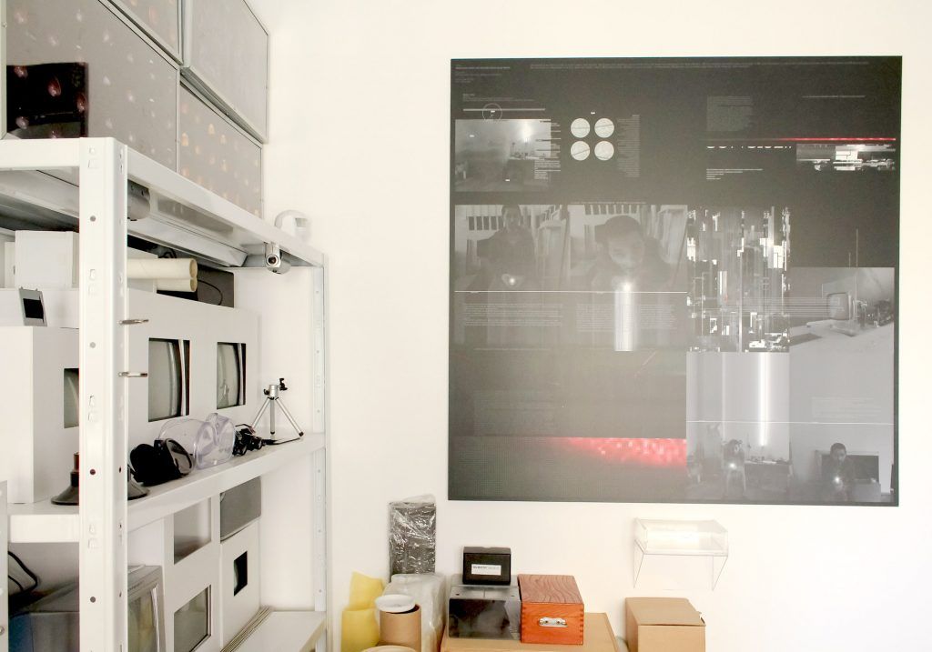 "Inca de la inceput am gandit spatiul ca o galerie locuita, cu elemente de mobilier unicat si insertii minimaliste din instalatiile mele de sunet sau lumina. Sunt cateva lucrari de mari dimensiuni, cu impact vizual puternic: o lucrare din proiectul “Identitate scanata” prezentat in Germania in 2010 "Ultra Giclee" print montat pe aluminiu si “Val linistit” imagine dintr-un performace filmat realizat in Portugalia in 2009. Acestea sunt completate de lightbox-uri cu problematizari medicale, fotografii cu interventii ulterioare, parti din cercetarile mele legate de relatia artei cu stiinta, tuburi de neon sau emitatoare laser montate in spatiul de lucru", povesteste Ciprian Ciuclea.