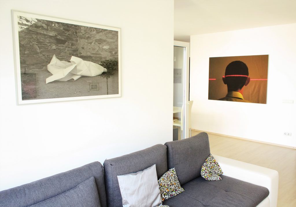 Cateva lucrari au fost plasate singular pentru a marca relatia cu spatiul. Un astfel de exemplu este printul de mari dimensiuni al lui Ciprian din spatiul de dining, care poate fi vazut din mai multe unghiuri dinspre living sau dinspre terasa.