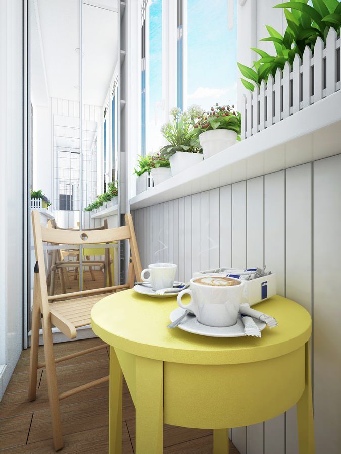 Masuta si suporturile colorate alaturi de verdele plantelor anima atmosfera de pe balcon.