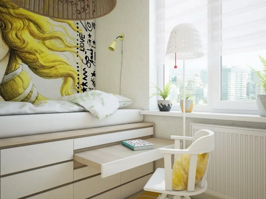 Dormitorul copilului amenajat cu mobilier multifunctional