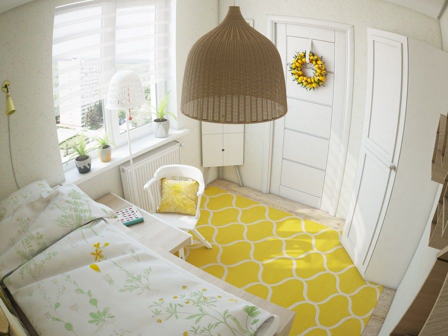 Covorul galben intr-un fundal de alb minunata alegere pentru a ilumina camera si a o face sa para mai mare!