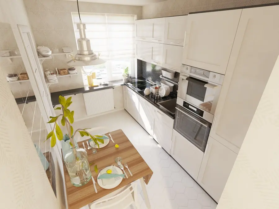Zona de depozitare de o parte si loc de luat masa de cealalta parte a bucatariei