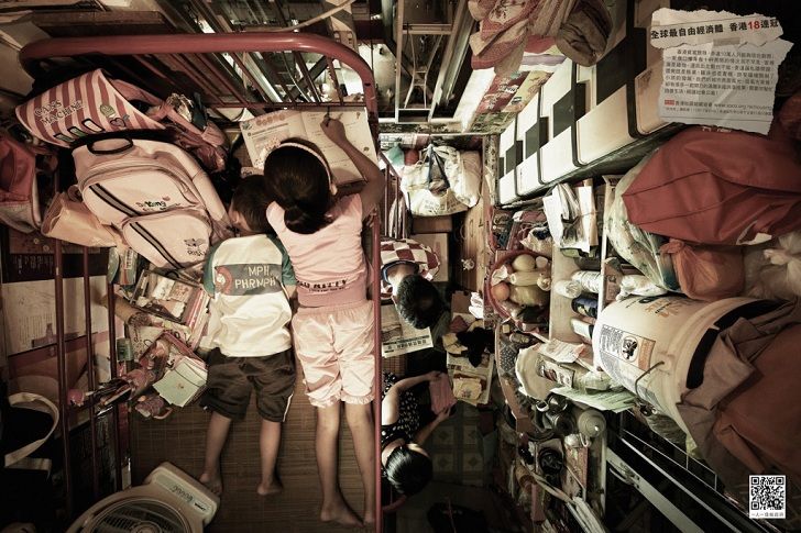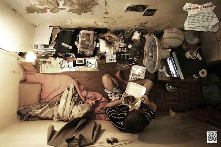 Costurile chiriilor din Hong Kong sunt cu 35% mai mari decat cele din New York, iar acest aspect a dus la crearea unor blocuri cu apartamente foarte, foarte mici, pentru familiile care nu isi permit sa plateasca foarte multi bani.
