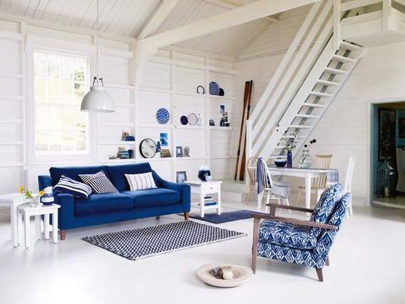 Combinat cu alb si nuantele calde ale lemnului, veti crea o atmosfera placuta pentru camera de zi, cu o influenta usor rustica. Tonurile de indigo se combina armonios si cu griurile.