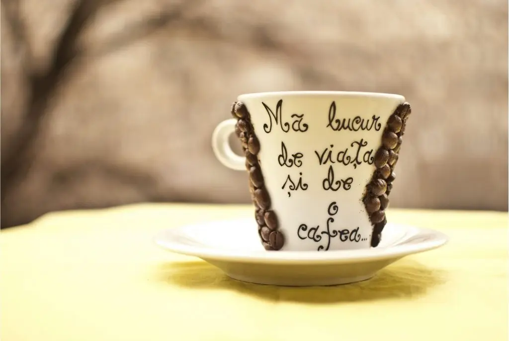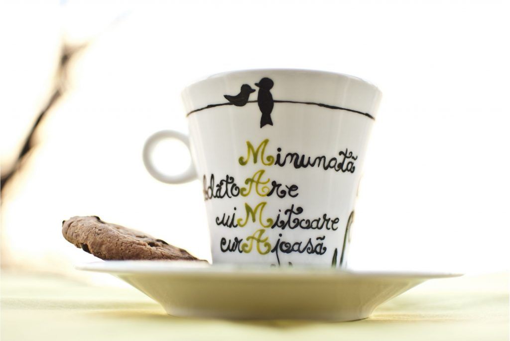 Ceasca Ma bucur de viata si de o cafea– e un indemn pe care noi toti ar trebui sa il urmam zi de zi ,de a trai viata la intensitate maxima. Un mesaj de care sa ne reamintim in fiecare dimineata in timp ce ne energizam cu o cafea. Designul special al canii – ornare cu boabe proaspete de cafea si pictura in portelan, transforma aceasta ceasca intr-una cu adevarat deosebita, un accesoriu special pentru fiecare zi speciala din viata noastra.
