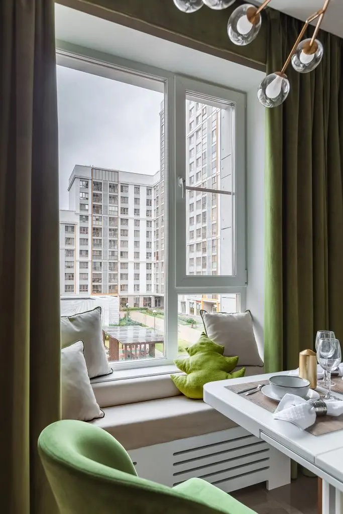 Glaful ferestrei din bucatarie ( fiind suficient de jos) a fost transformat in bancheta care deserveste masa de dining. Pe langa eficienta, s-a reusit conturarea unei atmosfere relaxante, prietenoase.