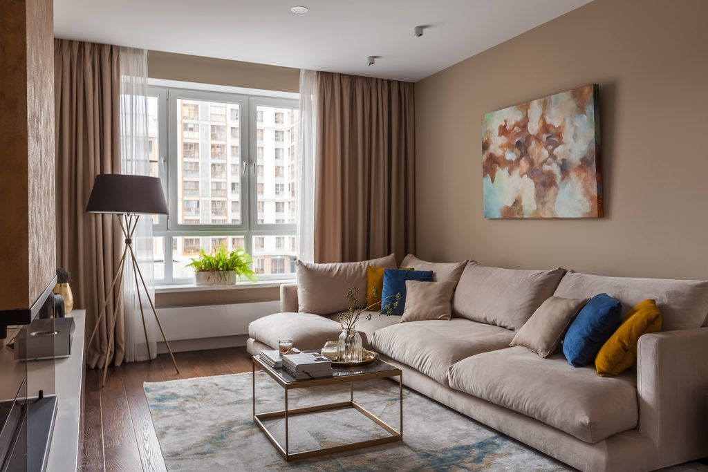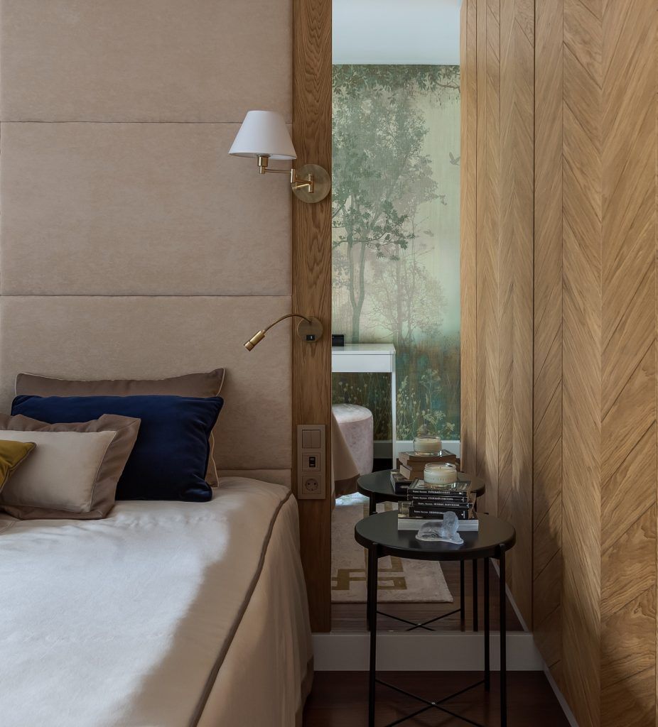 Intr-un decor neutru, minimalist, cu nuante calde, deschise, regasim accente viu-colorate, inspirate din natura, atat la nivel cromatic cat si ca textura si expresie vizuala. Este povestea unui apartament de trei camere din Moscova, situat in complexul rezidential Botanical Garden.