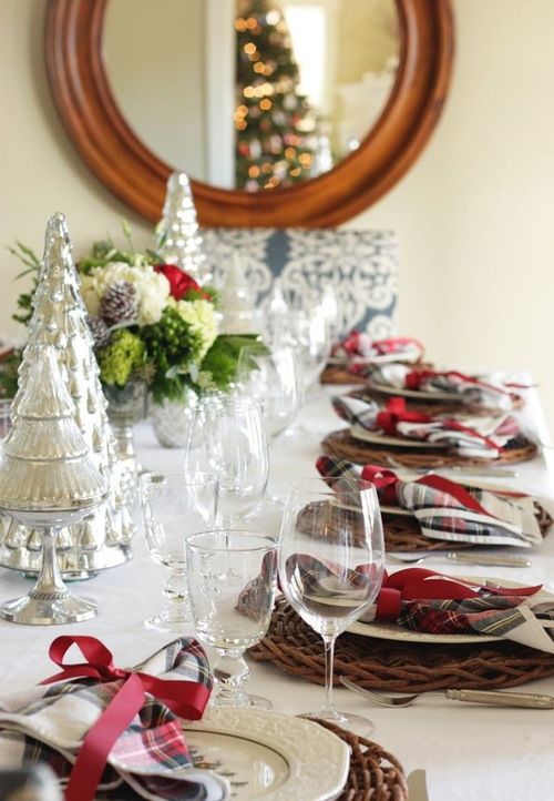 Pentru sarbatori, Craciun sau Paste de exemplu, masa poate fi aranjata cu tematica: braduleti, figurine de mosi craciun sau iepurasi si plante sau flori de sezon. Si cromatica influenteaza intreaga amenajare a mesei. Contrastul rosu-verde ne inspira in perioada sarbatorilor de iarna, pe cand nuantele pastel de roz, verde, galben ne duc cu gandul la primavara si renasterea naturii.