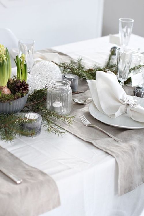 Incepem cu fata de masa si naproanele, baza oricarui aranjament. Calitatea e importanta aici. Evita materialele sintetice si alege bumbacul. Culoarea poate varia: albul sau cremul iti ofera libertatea sa adaugi accente de culoare ulterior prin detaliile decorative sau poti alege o culoare puternica, de impact, cum ar fi rosul ca simbol al Craciunului.