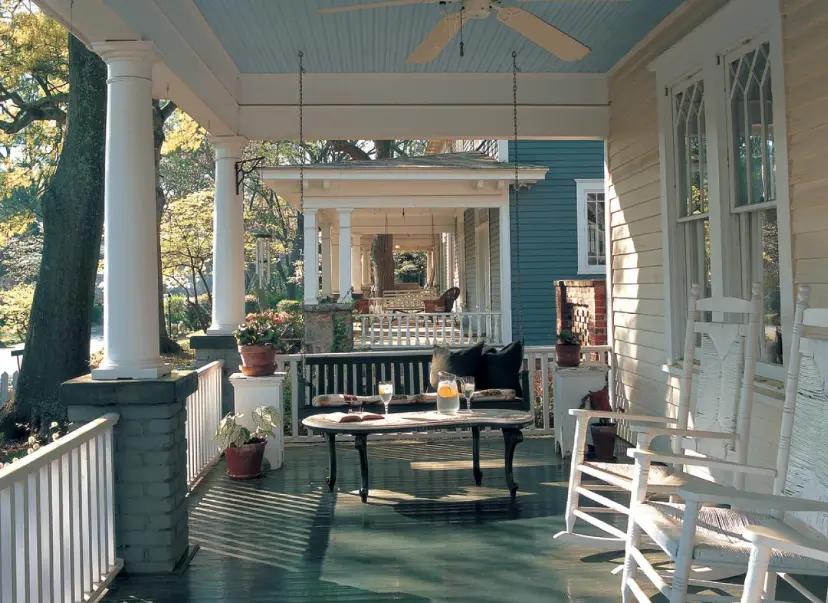 Exemplul 6 Ventilatorul de tavan este adesea folosit atat ca o accesoriu decorativ cat si functional. Acestea pot fi montat si pe veranda, pentru zilele calduroase cand nu adie deloc vantul.
