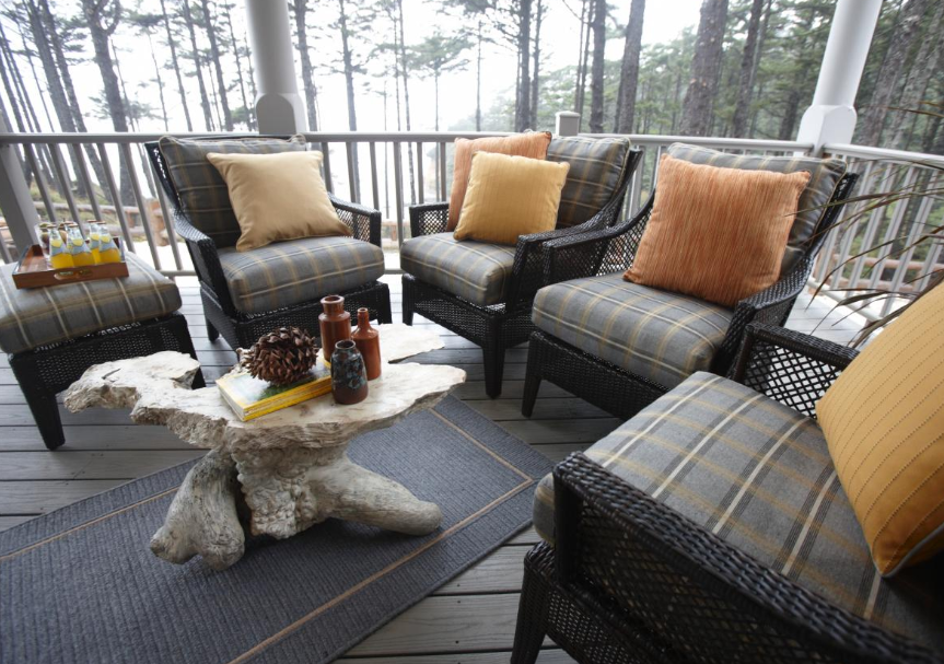 Exemplul 11 Puteti delimita, din punct de vedere vizual, zona de relaxare de pe veranda cu ajutorul unui covor. Iar daca spatiul va permite puteti grupa scaunele in cerc pentru a crea un coltisor ideal pentru conversatii si socializare cu prietenii.