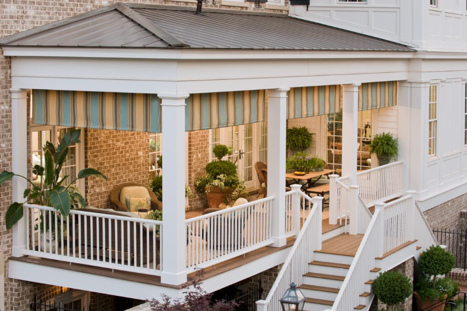 Exemplul 7 Un pridvor spre gradina casei poate fi locul perfect pentru a admira imprejurimile dar si pentru a supravegea locul de joaca al copiilor.