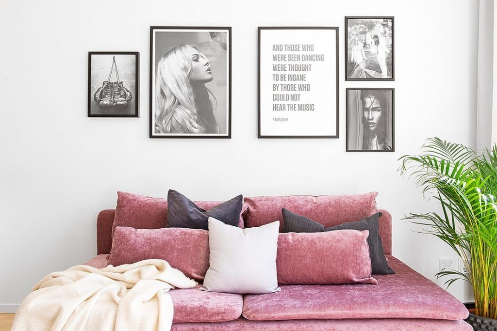Ca mobilarea, totul este pastrat cat mai simplu si mai aerisit. Scandinavilor nu le place sa incarce spatiul cu multe piese de mobilier, ci le aleg strict pe cele de care au nevoie, pe masura nevoilor lor. In cazul de fata, zona de living este redata minimal, cu o canapea, comoda si masuta de cafea. Accentele de culori sunt rare, si deseori in tonuri cat mai cuminti. Negrul si griul se regasesc des, dar in proportii care sa nu afecteze decorul. Aici, le regasim la nivelul tablourilor, al covorului, scaunelor si foarte putin in dormitor.