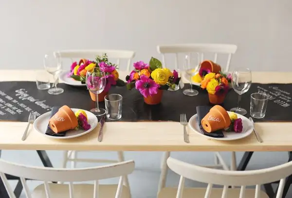 Daca te-ai plictisit de masa din dining sau de cea din bucatarie, da-i un nou aspect cu vopseaua de tabla scolara. Adauga niste scaune albe si redecorarea este gata. Foloseste un smirghel pentru a slefui suprafata mesei si aplica doua straturi de vopsea de tabla scolara. Lasa sa se usuce bine timp de trei zile si apoi o poti folosi cu incredere.